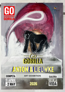 For those who want to take a lasting impression home: the works are for sale. Posters and cards featuring Anton’s work are also available. We warmly welcome you to the gallery to view the art—and perhaps even take home a special piece. The exhibition ‘Go Gorilla’ is on view from April 11 to May 2 at Galería Luz de la Vida in Cómpeta: